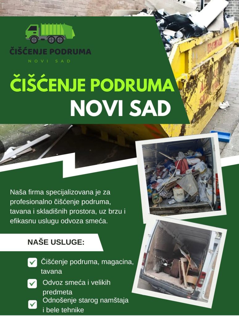 Mi smo posvećeni pružanju vrhunskih usluga čišćenja podruma i tavana u Novom Sadu i okolini. Sa godinama iskustva iza sebe, specijalizovali smo se za efikasno i temeljno uklanjanje svih vrsta otpada, od krupnog smeća do starih i nepotrebnih predmeta, kako bi vaši prostori postali uredni i korisni.